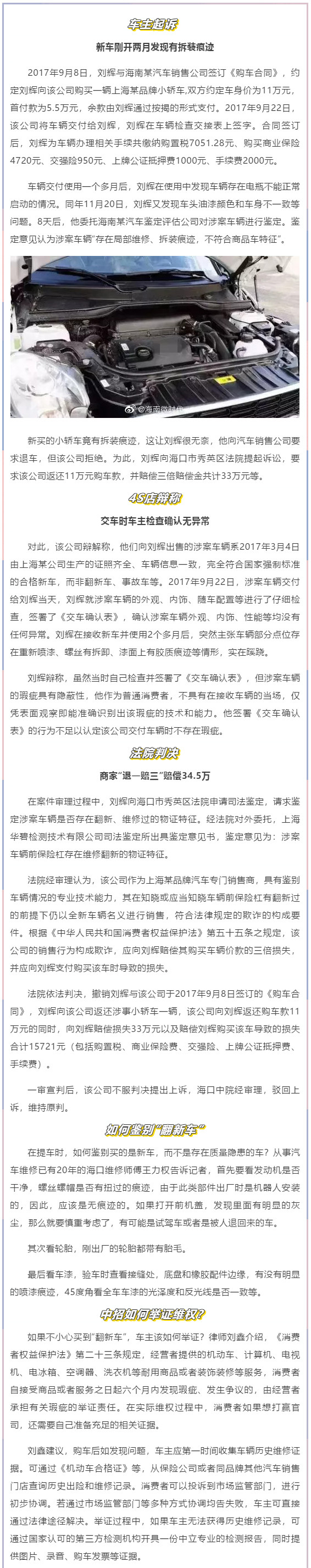 4S店销售翻新车,法院:退一赔三,赔车主34.5万